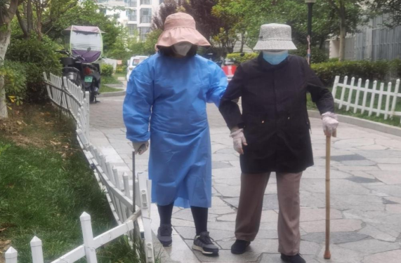 圖為:黨員志愿者攙扶老人到核酸檢測(cè)點(diǎn)